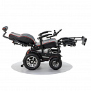 Кресло-коляска Caterwil Ultra пятой версии имеет электрорегулировку каждой подножки и электрорегулировку спинки. Доступ к данным функциям осуществляется с пульта коляски. Также на пульте управления можно активировать функцию “Кровать”, когда при нажатии кнопок или джойстика одновременно поднимаются подножки и отклоняется спинка кресла. Таким образом, пользователь легким движением руки может принять горизонтальное положение.